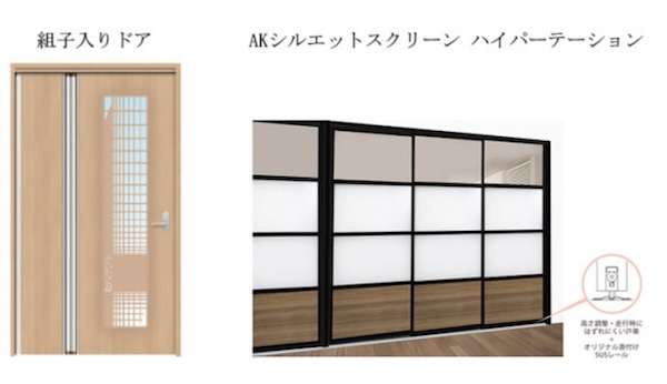 高齢者福祉施設・医療施設向けの引戸「HAARTFULシリーズ」に、新たに組子デザインを取り入れた「組子入りドア」をラインアップ。和風デザインの空間に適する。