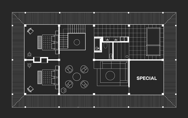各棟には、リビング・ラウンジや吹き抜け、ダイニングルーム、バスルーム、サウナ、ベッドルーム、アウトドアリビングを設けたほか、用途を変えた特別な「マス」をそれぞれ一室用意。和室(MASU-1)、シアタールーム(MASU-2)、書斎(MASU-3)、寝室(MASU-4)と、目的に合わせてハウスを選ぶこともできる。敷地内には宿泊者やオーナーが利用できるレストランも用意されている。
