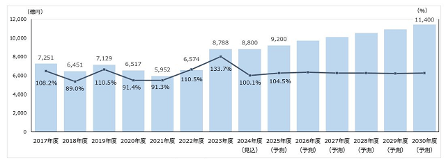 今後一層、SDGsやカーボンニュートラルへの対応が求められ、環境負荷軽減に寄与する木の活用ニーズは拡大すると考えられることから、2030年度の市場規模は、床面積ベースで410万㎡(2023年度比22.7%増)、工事費予定額ベースで1兆1400億円(同29.7%増)に拡大する見通し。現在、大企業が中心のESG経営が中小企業にも広まることで、市場拡大を後押しすると期待される。