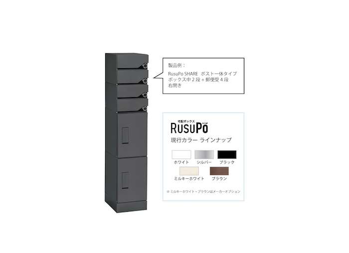 ポスト+宅配ボックスを複合した構造で、大型・小型の収納スペースを設けることにより、効率よく複数の荷物の受け取りが可能。大型の収納スペースは2段に分かれており各扉に施錠機能が付いているため別々に納品することができ、小型の収納スペースには郵便物と小型宅配物を投函することができる。