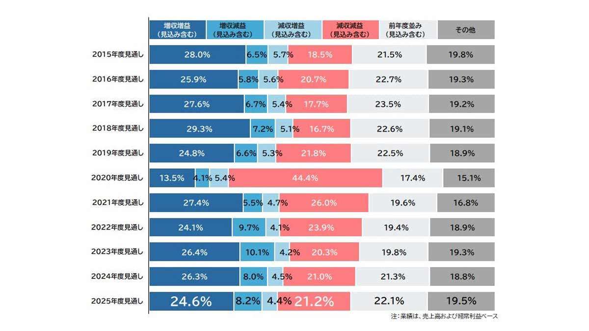 地域別では、「四国」「北関東」の2地域で改善。「北海道」「近畿」など8地域で悪化した。都道府県別では19府県で改善し、27都道府県で悪化した。一部の地域で公共工事の低迷が下押し要因となっている。