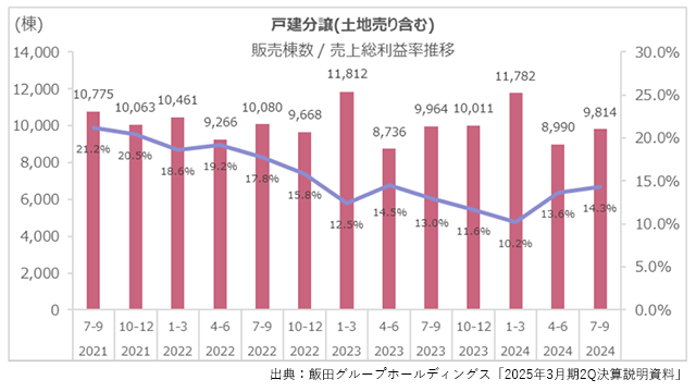 戸建分譲事業の販売棟数と売上総利益(資料より引用)