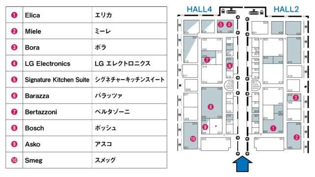 ①Elica -エリカ- / ②Miele -ミーレ- / ③Bora -ボラ- / ④LG Electronics -LGエレクトロニクス- / ⑤Signature Kitchen Suite -シグネチャーキッチンスイート- / ⑥Barazza -バラッツァ- / ⑦Bertazzoni -ベルタゾーニ- / ⑧Bosch -ボッシュ- / ⑨Asko -アスコ- / ⑩Smeg -スメッグ-