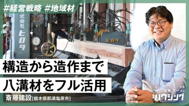 斎藤建設(栃木県那須塩原市)は、価値観を共有した顧客に、良材として知られる「八溝(やみぞ)材」を全面的に用いた断熱等級6超・耐震等級3(許容応力度計算)の高性能住宅を提供する。社長の斎藤賢一さんは、墨付け・手刻みなど大工の伝統的技術を活用することにもこだわり、家づくりを通じて次世代に大工の技術をつないでいくことを重要なミッションとして掲げる。 【編集部 関卓実】