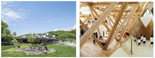 「農林水産大臣賞」は、フレンド恵学園(北海道)、照井康穂建築設計事務所(北海道)、ジェーエスディー(東京都)、岩田地崎建設(北海道)、物林(東京都)による「浦河フレンド森のようちえん」が受賞した。汎用材で構成した木造立体トラスの園舎内で、子どもたちが木に触れながらのびのびと活動できる空間づくりを実現。周囲の環境と調和した「森のようちえん」の実践例としてふさわしいと評価された。子どもの学び、地域の森林資源活用、地元事業者の技術が連携した取り組みとなっている。
