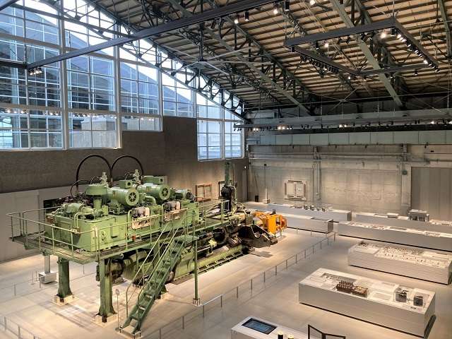 当時の鉄骨トラス屋根やスチールサッシを展示物として残しつつ、壁面は全面カーテンウォールとし、新旧融合の建築によって空間をよりダイナミックにみせる構成とした。カーテンウォールには、アルミリサイクル材を100%使用し、CO2削減に貢献。今後は、再生可能エネルギー100%と生産過程で発生する排熱エネルギーの再利用を目指す。