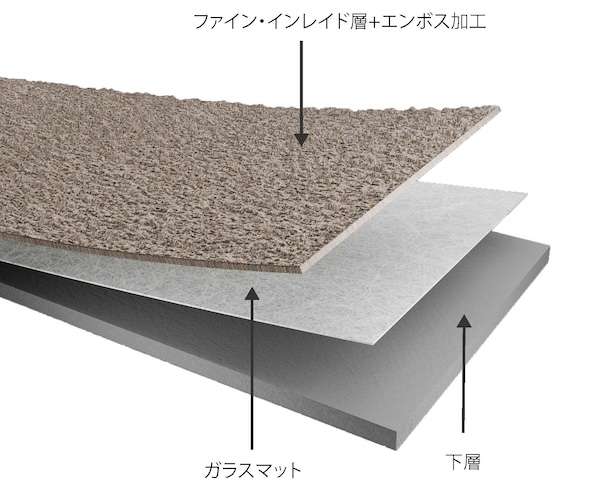 新アイテムの1つである「ファイン・インレイド」は、複数色の微細なチップを組み合わせた複雑な色調と、表面の凹凸質感が個性的。