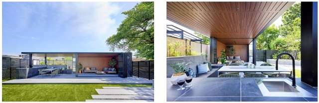 大賞には、「ガーデン部門」のカエデスタイル 横浜オフィス(神奈川県横浜市)が選ばれた。キッチン・ダイニング・リビングルームからなる上質な庭空間で、周囲の景色が楽しめる配置と折戸で居住性を高めた構成が「居心地の良さ」を実現。タイルテラスの床や日差しを遮るルーフ、植栽やガーデンファニチャーで、本当の意味で「外のリビング」とした点が評価された。デザインは「普遍のモダニズム」をテーマに、統一性のある配色、ディティール、サイズ感で、上下のラインに包まれたシンプルな空間を作り出した。採用製品はフーゴ、プラスG、デザイナーズパーツ、笠木タイル、開き門扉AB。