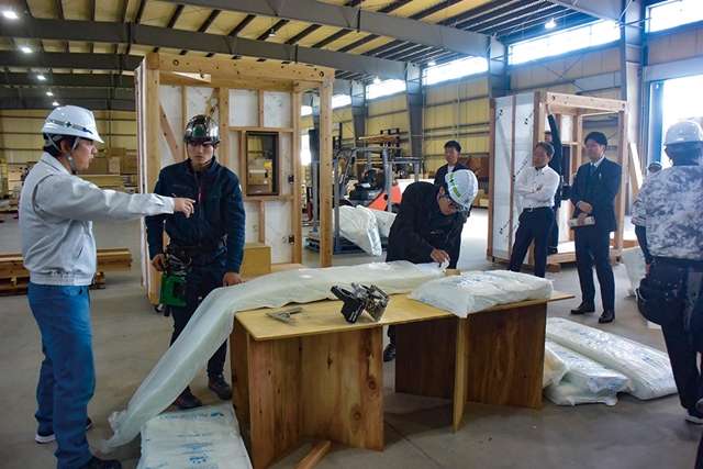 大工歴の長い大工が率先して作業しつつ、経験が少ない大工も指導員の指示を仰ぎながら手順に沿って作業した