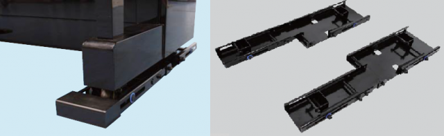 「ピアホールド」は、4つすべてのキャスターを専用固定器具で固定。地震の際には固定器具ごと揺らして高減衰ゴムに振動を吸収させることで転倒を防ぐという仕組み。耐震試験において、震度6の振動でもピアノ(1階に設置)が倒れないことが証明されている。