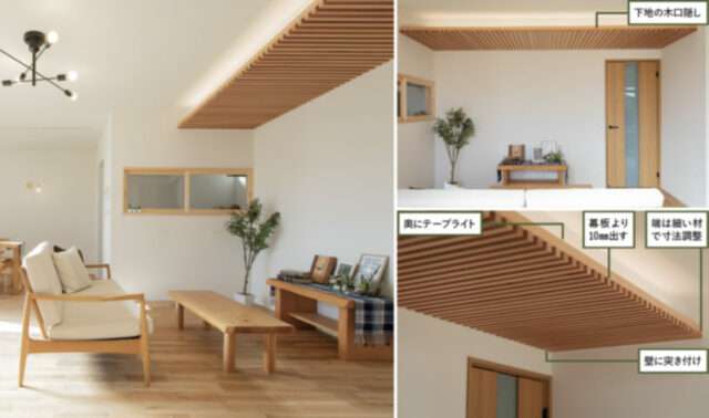 本記事は、新建ハウジング別冊・月刊アーキテクトビルダー12月号「すぐデキ[超]造作術」内の「❶リビング編 ②細部で差をつける[超]造作術」に掲載した事例の中から、村木建築工房(静岡県浜松市)の内容を抜粋したものです。