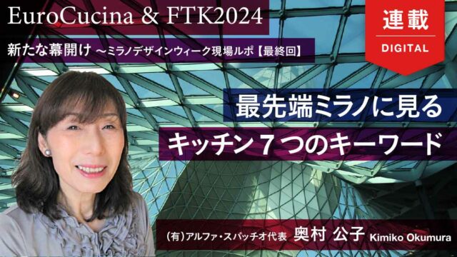 2024年の新たな会場構成の試みがファーストステップ。次回2026年のEuroCucina/FTKには、どんな仕掛けが用意されるでしょうか。2年後、さらに進んだ最先端のデザイン・イノベイティブなテクノロジーを目にすることになるはずです。(*10月9日、来年1月のケルン国際家具見本市(imm)が中止との発表があり、これからの見本市の動向も気になるところです。)