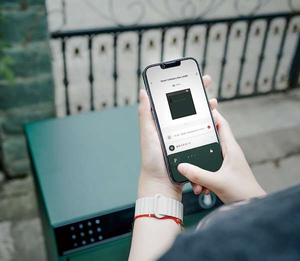スマホアプリ連動仕様で、Bluetooth接続により宅配ボックスの扉の解錠操作を行うことができる。鍵不要のため、紛失の心配がない。