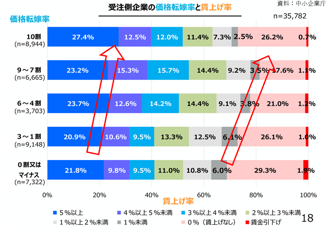 受注側企業の価格転嫁率と賃上げ率(資料より引用)