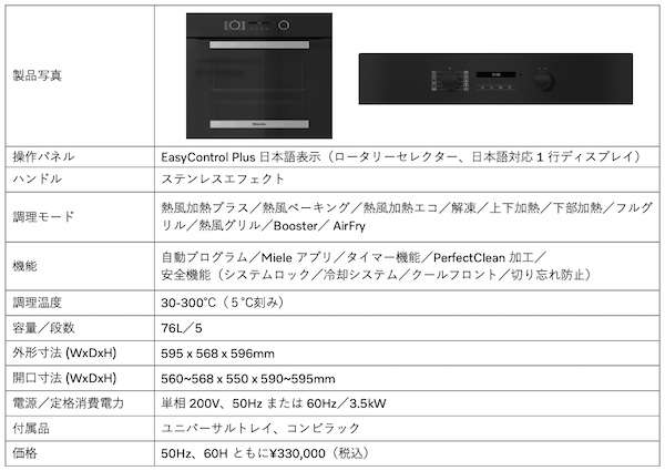 ミーレ・ジャパン(東京都目黒区)は12月5日、求めやすい価格のビルトインオーブンの新モデル「H 2465 B」を発売する。