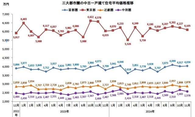 東京カンテイ(東京都品川区)は12月9日、11月の主要都市における中古木造一戸建ての供給動向を発表した。首都圏・近畿圏は反転上昇、中部圏は反転下落した。