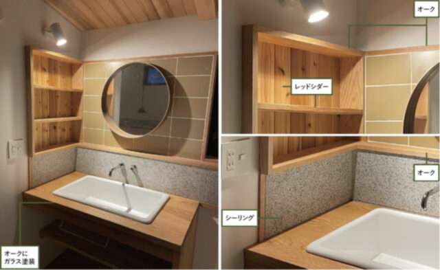 本記事は、新建ハウジング別冊・月刊アーキテクトビルダー12月号「すぐデキ[超]造作術」内の「❸洗面脱衣室編 映え&ラク家事」に掲載した事例の中から、カモノハシコウムテン(愛知県一宮市)の内容を抜粋したものです。