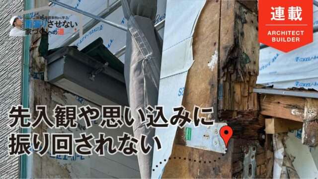 今回の雨漏り修理事例は、施主が見つけた雨漏りの箇所とは異なる部分で浸入箇所を突き止めた例だ。先入観や思い込みに左右されると、瑕疵を見失うことにもなりかねない。論理的に仮説を立て、考えうる限りの雨漏りのリスクについて検証していくことが重要だ。そのプロセスについて、事例をもとに調査・修理の段階ごとの注意点も含めて、ご紹介する。