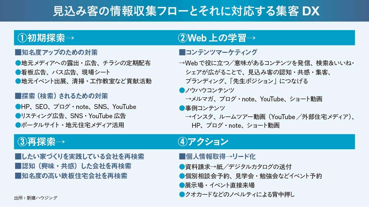 工務店・住宅業界のDXを提唱してきた筆者なりの視点で、現時点における工務店のDX&AI活用についてまとめてみた。解説する内容・ユースケース(活用シーン)は以下の通り。この記事では、『集客DX』について解説する。