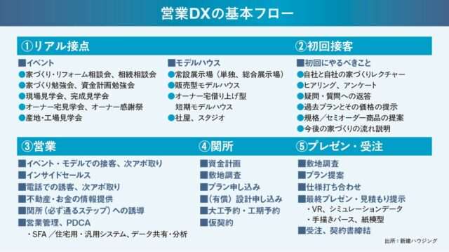 工務店・住宅業界のDXを提唱してきた筆者なりの視点で、現時点における工務店のDX&AI活用についてまとめてみた。解説する内容・ユースケース(活用シーン)は以下の通り。この記事では、『営業DX』について解説する。