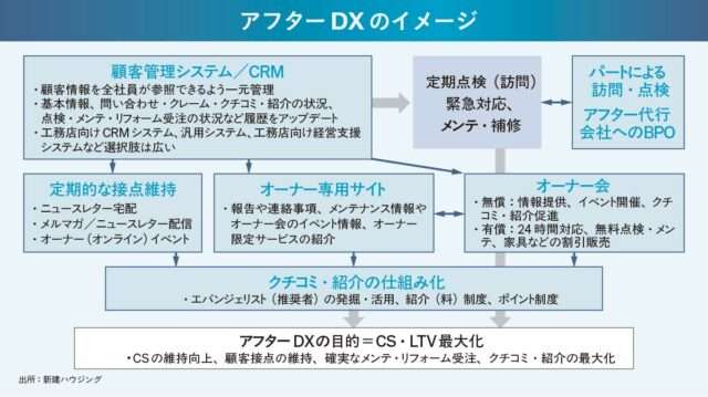 工務店・住宅業界のDXを提唱してきた筆者なりの視点で、現時点における工務店のDX&AI活用についてまとめてみた。解説する内容・ユースケース(活用シーン)は以下の通り。この記事では、『アフターDX』について解説する。
