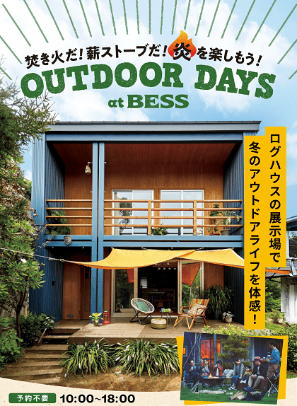 ログハウス「BESS」を展開するアールシーコア(東京都渋谷区)は、2025年1月から全国のBESS展示場「LOGWAY」にて、冬のアウトドアライフ体感イベント「Outdoor Days」を開催する。