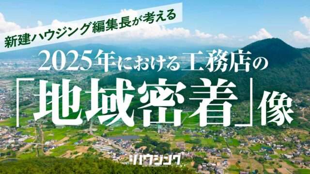 工務店にとって“地域密着”は金科玉条でした。地域の特性に合った家を、地域の人・材料でつくり、地域に貢献し、地域から必要とされる存在になる―大変ありきたりな表現ですが、おそらくほぼ全ての工務店経営者は心の奥底にそんな思いを持っているに違いありません。「商圏は1時間以内です」「エリア外からの問い合わせはお断りしています」といった常套句は、地域密着こそが工務店だという概念を端的に表しています。