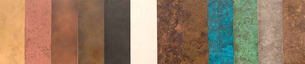 富山県高岡市のモメンタムファクトリー・oriiの銅板発色技術「ORII MAERBLE」を使用。大理石や天然木のような自然な表情を職人の手仕事でつくりあげた銅のタイルと衣類掛けを組み合わせた。