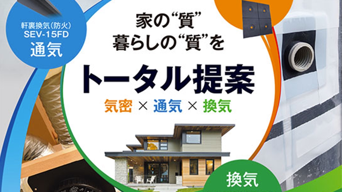 通気には、軒裏換気(防火)「SEV-15FD」を勧める。防火性能を搭載したスリムデザインで軒ゼロに対応する。「SEV-15の防火品がほしい」という顧客の要望に応えて準耐火構造45分の防火認定を取得した。
