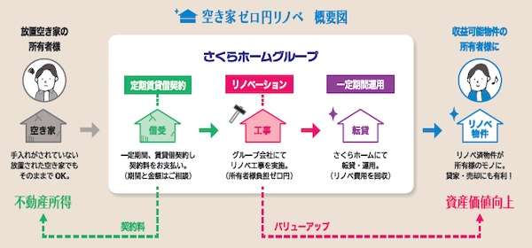石川、富山、福井で売買・賃貸仲介を手がけるさくらホーム(石川県金沢市)は、空き家を所有しながら売却や賃貸の決断がつかない人に向けた新サービス「空き家ゼロ円リノベ」を開始した。