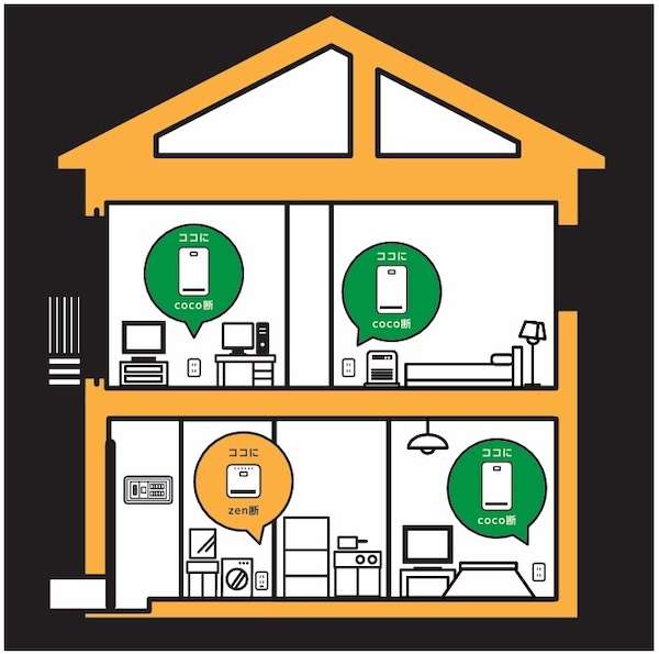 また、特定機器遮断タイプの「coco断(ここだん)」と「zen断」を併用し、火元になりそうな電気機器を即遮断することで、安全性をより高めることができる。