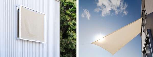 縦横の寸法をすべてサイズオーダーで製作するため、窓と一体感のある立体的な印象になり、フレームの影も建物のアクセントになる。