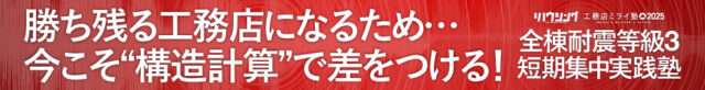 鈴木淳さんが講師を務める『全棟耐震等級3 短期集中実践塾・第7期』が1月からスタートします。詳細はバナーをクリック!▼▼▼