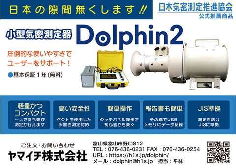 ヤマイチ(富山県富山市)は、工務店が自社で測定できる小型気密測定器「Dolphin2」を提供する。軽量・コンパクトで一人で持ち運べ、操作もタッチパネル式のため初心者でも簡単に測定することができる。