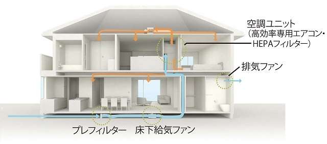 HEPAフィルターを搭載した全館空調システム『エアロハス』のイメージ