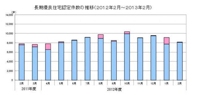 国土交通省が3月15日発表した2月の長期優良住宅の認定件数は、一戸建ての住宅が8089戸、共同住宅などが89戸で、総戸数は8178戸だった。前年同月に比べ、4.9%増。
