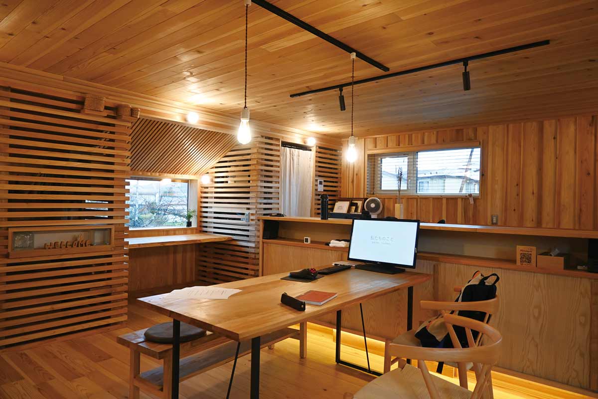 | フルリノベにより、自社が手がける住宅の性能や世界観(空間の魅力)を再現した事務所兼ショールームの内観・外観 | |