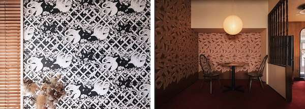 ブランドコンセプトは「ローカリズム」「民藝の美」。店主が生まれ育った神奈川県の三浦・三崎エリアをモチーフとした6点の不織布壁紙コレクションを、地元を拠点に活動する3人のアーティストとつくりあげた。