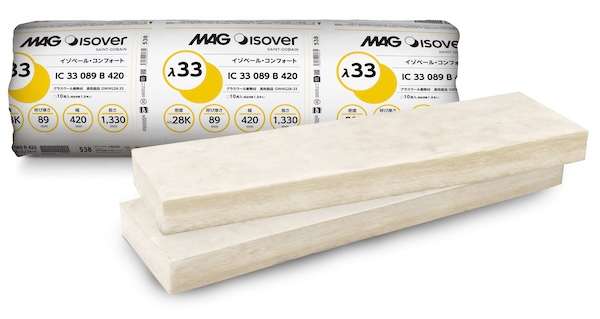 マグ・イゾベール(東京都千代田区)は、植物由来の結合剤を使った住宅用高性能グラスウール断熱材「イゾベール・コンフォート」に、枠組壁工法でGX志向型住宅に対応する厚さ89mm品を3月3日に発売する。