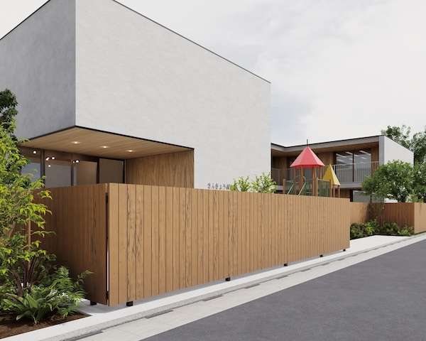 三協アルミ、国産スギのサーモウッドを使った大型フェンス