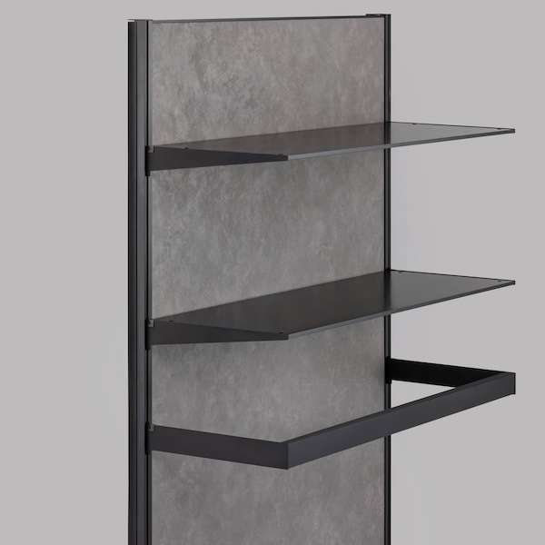 色は、パネルユニットがブラック・グレー(コンクリート調)の2色、アルミ棚・ハンガーパイプがブラック1色。