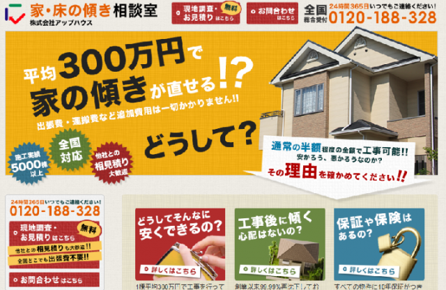 沈下修正工事のアップハウス(埼玉県越谷市)はこのほど、家や床の傾き修理の専門サイト「家・床の傾き相談室」を開設した。