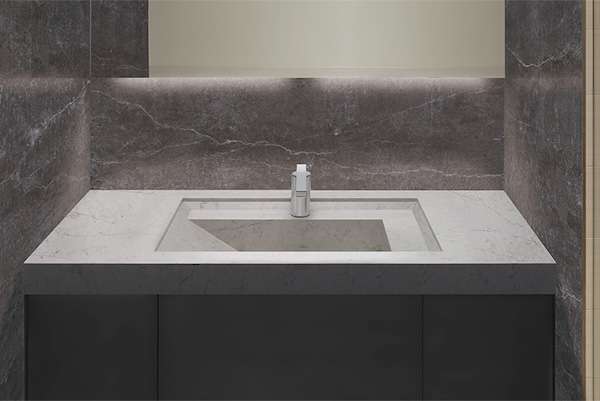 エービーシー商会(東京都千代田区)は、天然石の風合いと優れた耐久性の人造石・サイルストーンを使った洗面カウンターシリーズ「クォーツカウンター」に新デザインを追加した。