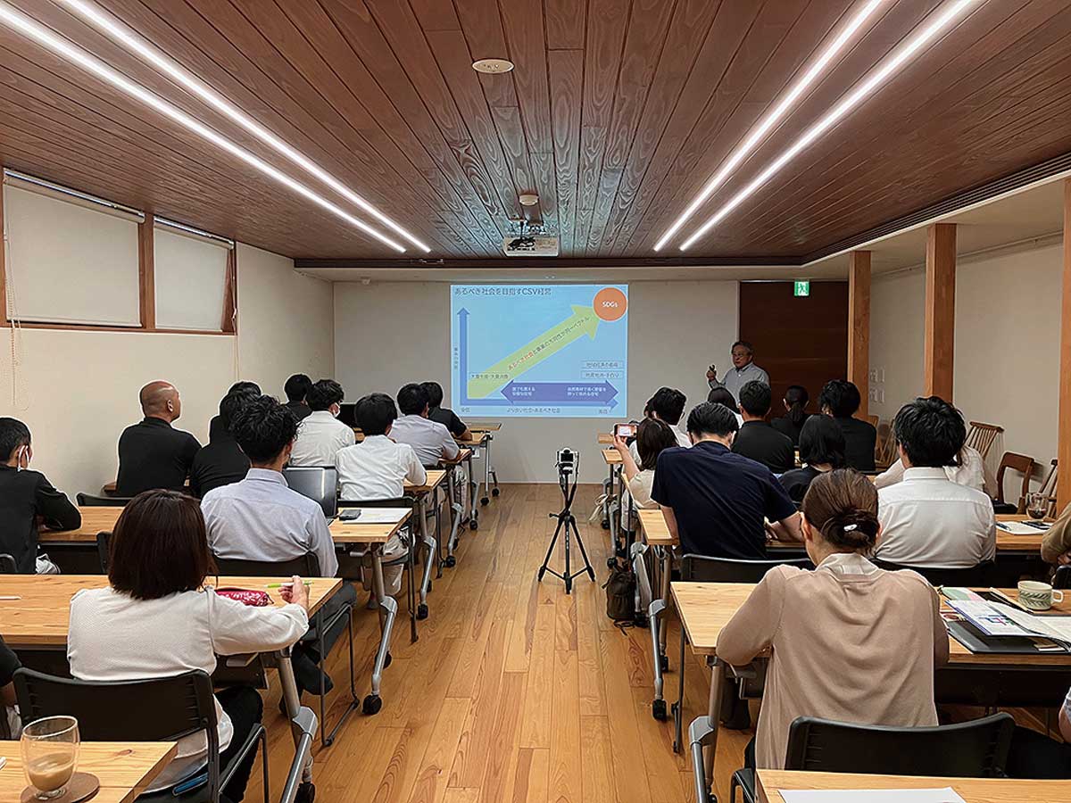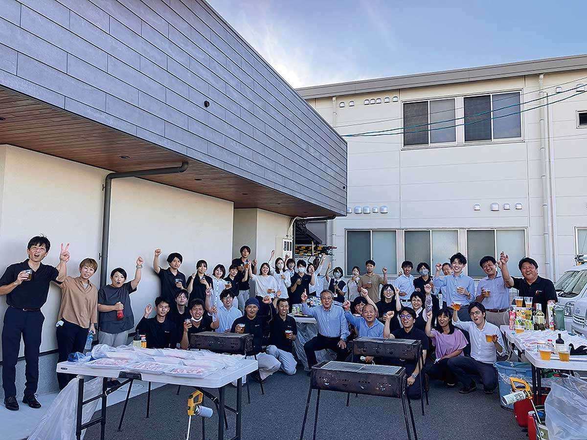 | 廣瀬氏が山口支店の店長の時代に企画した、社長の安成信次氏と同支店社員の勉強会兼バーベキューイベント。大規模な工務店になると社長と触れ合う機会がない。イベントを企画することで経営者の熱量の高い言葉に触れさせて、モチベーションを高める。これも上司の仕事の1つ | |