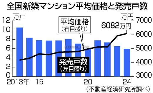 25年の見通しについては「(中心部などの)高額物件が全体の平均価格を押し上げる」と予想。発売戸数は全体で増加に転じるが、地方によってはさらに減る可能性があると見込んだ。