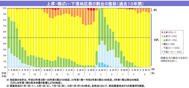 上昇の要因として、住宅地では利便性や住環境の優れた地区を中心にマンション需要が堅調だったことを挙げた。商業地では再開発事業の進展や観光客の増加による店舗・ホテル需要の増加が主な要因となっている。