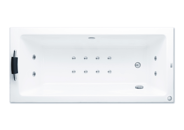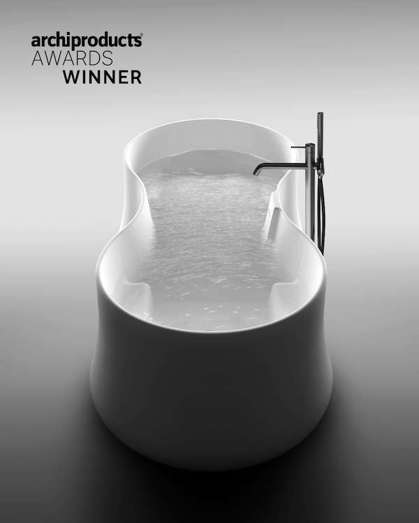 鉱物フィラーとトウモロコシ由来の植物性樹脂で構成されたサステナブル素材「Cristalplant」を採用したバスタブコレクションから、全長2mのゆったりサイズで2人入浴も可能なラグジュアリーモデル「IN-2000-E」や、都市型バスルームにも対応する1.5mサイズの「CH-1500-E」などを揃えた。