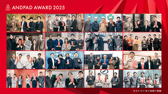 「ANDPAD AWARD」は、ANDPADを利用する法人・ユーザーのDXの取り組み、エピソードを共有することで、ANDPADの活用促進や業界の活性化に貢献することを目的に開催。