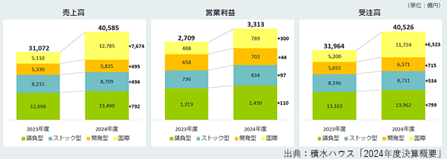 国際事業では、24年4月に米国でMDC社を完全子会社化したことに加え、新築住宅へのニーズが高まったことから売上高が1兆2785億1100万円(同150.2%増)、営業利益が789億4500万円(同61.4%増)と大幅な増収増益となった。