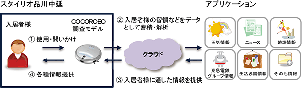 調査では、天気、ニュース、交通遅延などの日常生活に必要な情報や、東急線沿線情報、沿線サービスを、シャープの提供するクラウドサービスが収集・加工して「COCOROBO」に搭載している音声認識技術を活用して入居者に音声で生活情報や省エネアドバイスを提供する。